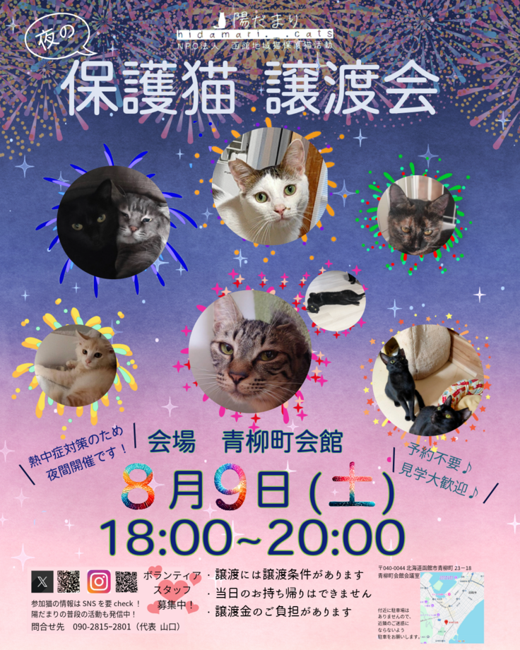さて、前置きが長くなってしまいましたが、私たち「陽だまり」では保護した猫たちの里親探しも行っており、月に一度の譲渡会や、X、Instagramなどの呼びかけで、今までで100匹以上の子たちに里親様とずっとのおうちを見つけてあげることが出来ました🎉🎉🎉