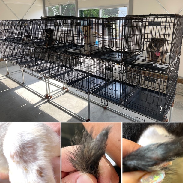 先日、広島県動物愛護センターからやって来た子犬達、数頭に真菌が見られ隔離棟に移り治療開始しております。