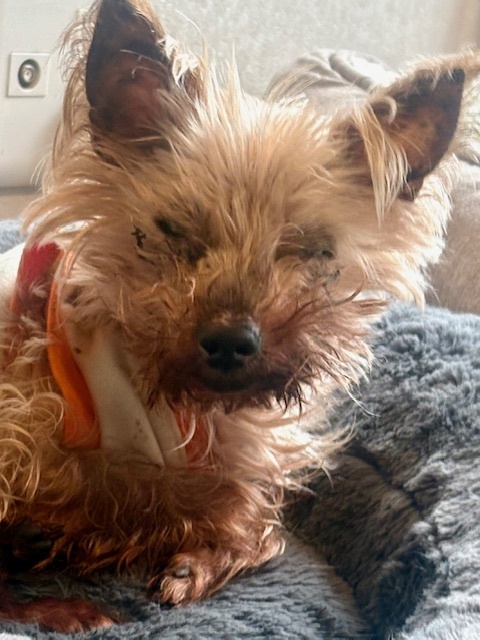 このおばあさんヨーキーは13歳の時、飼い主の病気で手放されました。