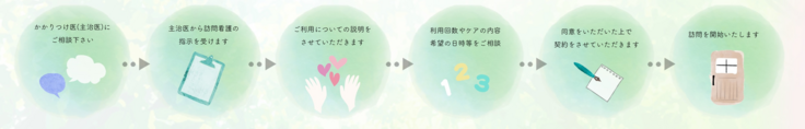 らぐれーぬでは、まだ集団に入ることの緊張感が高かったり、体調や体重が十分でなく、プティパへの通所が難しいため自宅で療養をしている方に対して、看護スタッフがご自宅に伺い、体調のケアを行ったり、不安について丁寧に話を聞くことで回復をサポートし、その後の通所施設に繋がるような訪問看護活動を行っています。