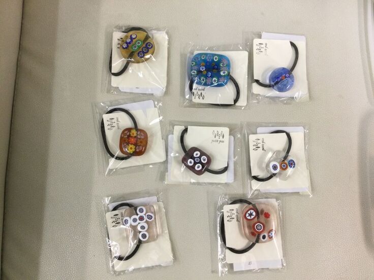 ガラスの焼き具合や溶け具合は一つずつ変わります。特にガラスヘアゴムはこの世に二つとない一点物です。