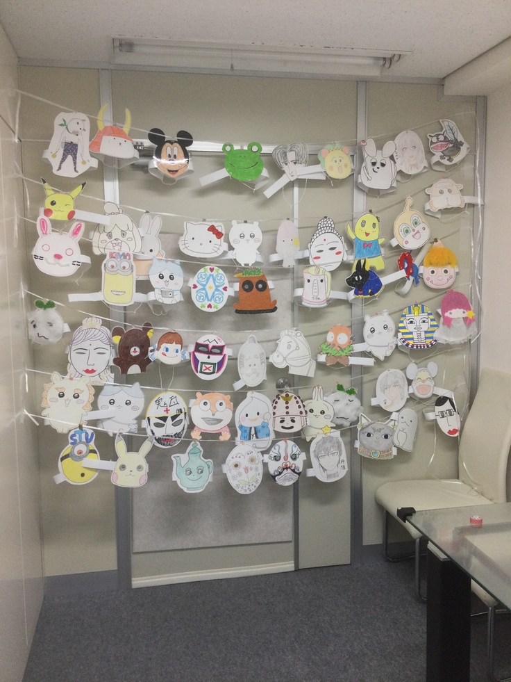 懐かしのキャラクターから、ゲームのキャラクターまで、皆さんの力作がずらりと並ぶ圧巻のお面屋台でした。