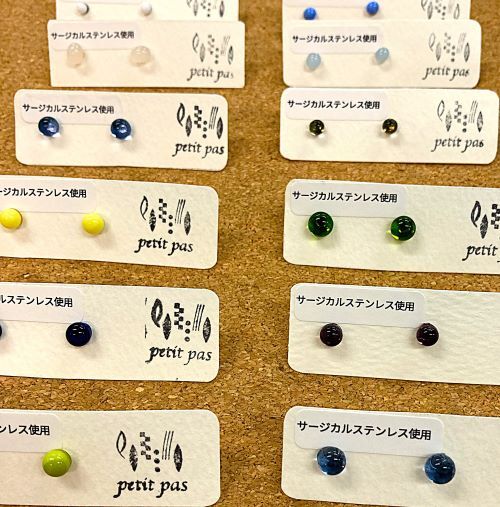 プティパのガラス製品の一番人気はこの写真にある『一粒ピアス』です。