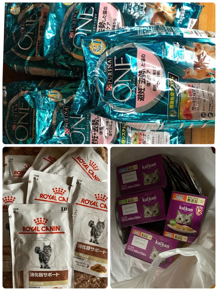 ロイカナは注文していたものが昨日届きました。ピュリナやパウチは昨日仕事帰りに2店舗回って購入しました。