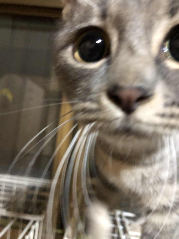 ゆきちゃんです。くりくりの目と綺麗なグレー毛で、この写真だけでも甘えん坊さが伝わるのではないでしょうか?😊