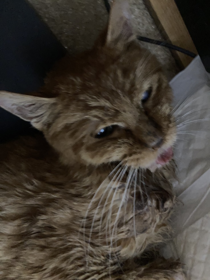 ちなみに今のちゃちゃは相変わらずテレビ台の下がお気に入り。ベッドも買ったんだけど、ここが落ち着くみたいです。
