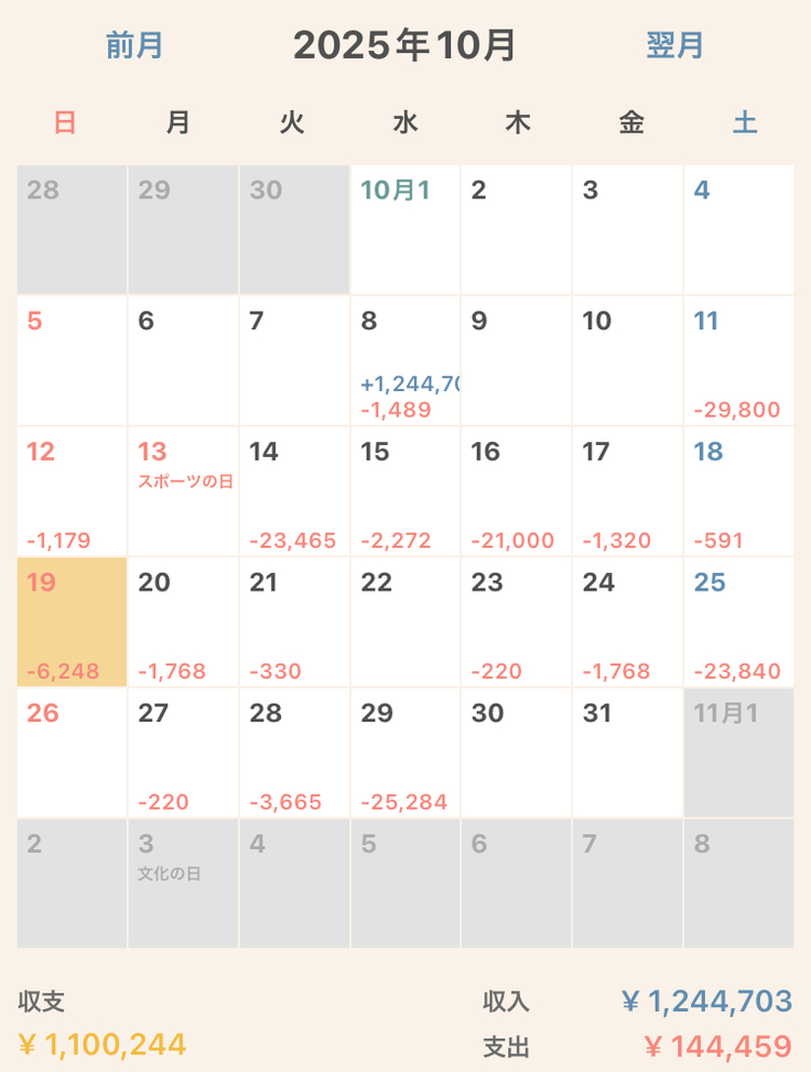 10月分の収支報告