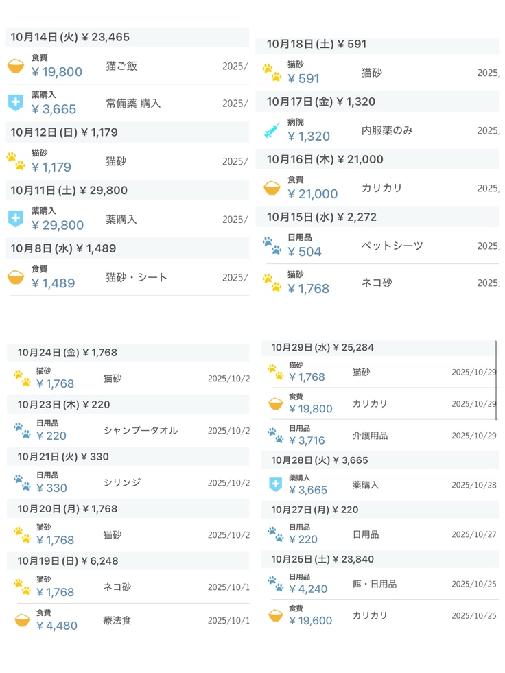 10月は、日々のご飯代や猫砂、常備薬などの購入にあてさせていただきました。