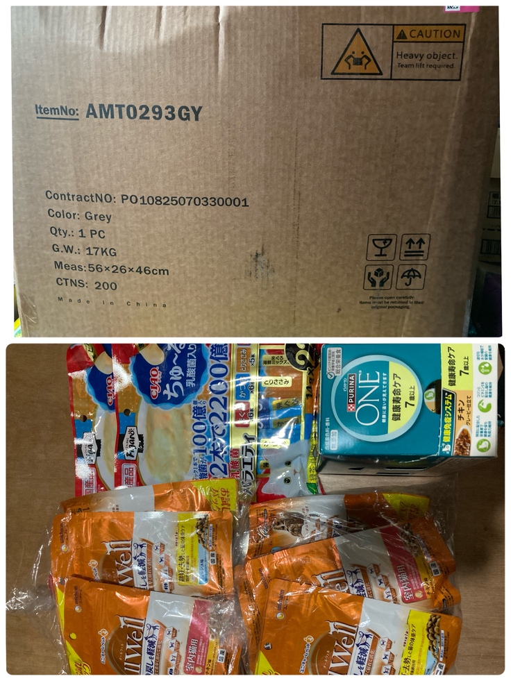 ご支援者さまより、たくさんのご飯やちゅーる、そしてキャットタワーまでいただきました。