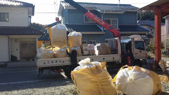 (福島県南相馬市で集まった物資を輸送する時の写真)