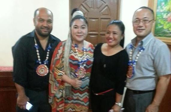(福島での救援物資収集並びにコンテナ輸送にご尽力下さった(株)ナプロアース表敬訪問時の写真。一番右がナプロアースの池本社長、中央がナバル州立大学の前学長、一番左が英語教授のジョイです)