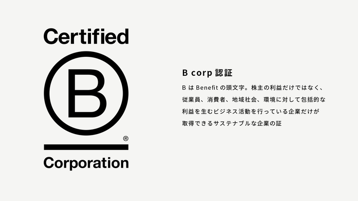オーガニック認証、フェアトレード認証などは生活する上で目にすることはあると思いますが、 B CORP 認証はあまり聞き馴染みがないと思います。 REDA はサステナブル企業として今のようにサステナブルが存在する20 年以上も前から環境への配慮 を行いながらものづくりを行っており、 様々なノウハウ、環境認証を取得してきました。 ついにビジネスを通じて社会貢献をする企業だけが取得できるB CORP 認証を取得しました。 取得している企業は非常に稀です。
