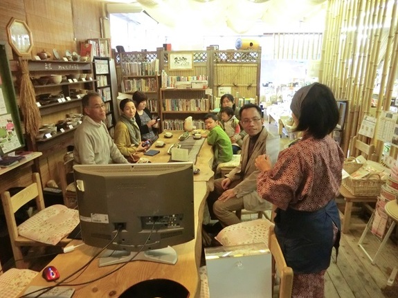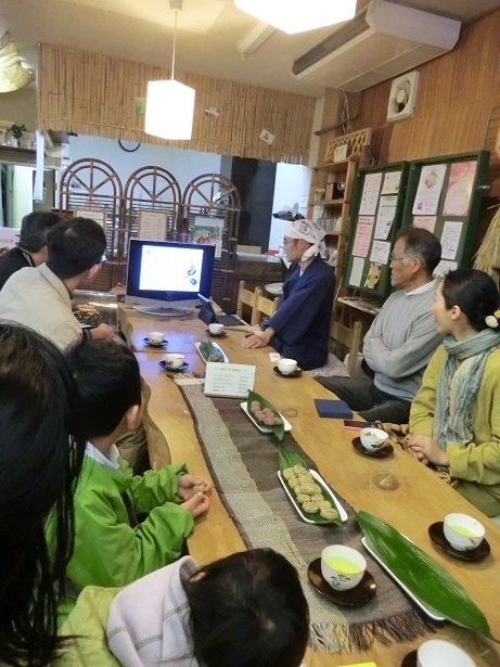 我々は作務衣がユニフォームです。ぬくみちゃんの説明や、それ以外の自然エネルギー利用についての紹介を行いました。