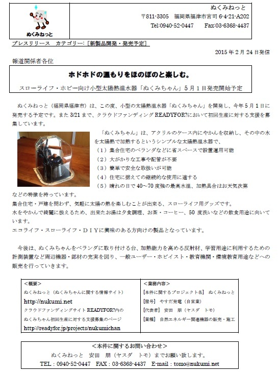 そして今日、プレスリリース発信サイトを使い各種メディア(WEBのメディア含む)への発信も行いました。