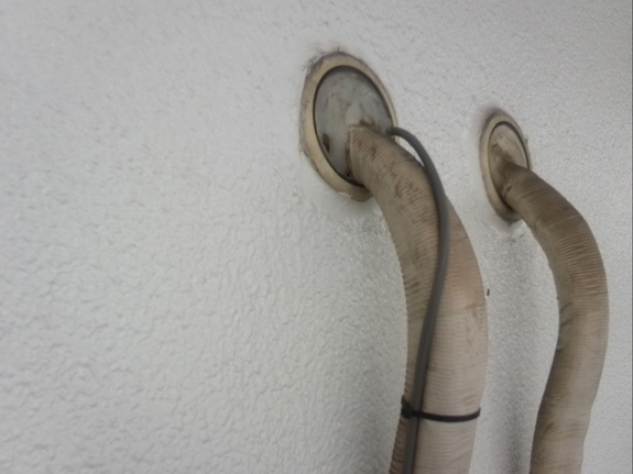 エアコン配管の横から家に線を引っ張り