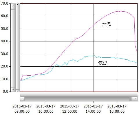 最高温 16:15 時点で63.9℃、開始時12.8℃ですから+51.1℃です。