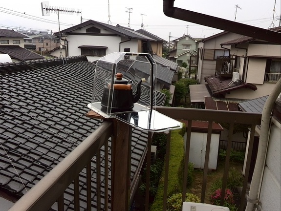 ベランダの内側に置いて使われた際に加熱が物足りなかったようですので、2Fベランダにひっかけ架台を作り取り付けてみました。