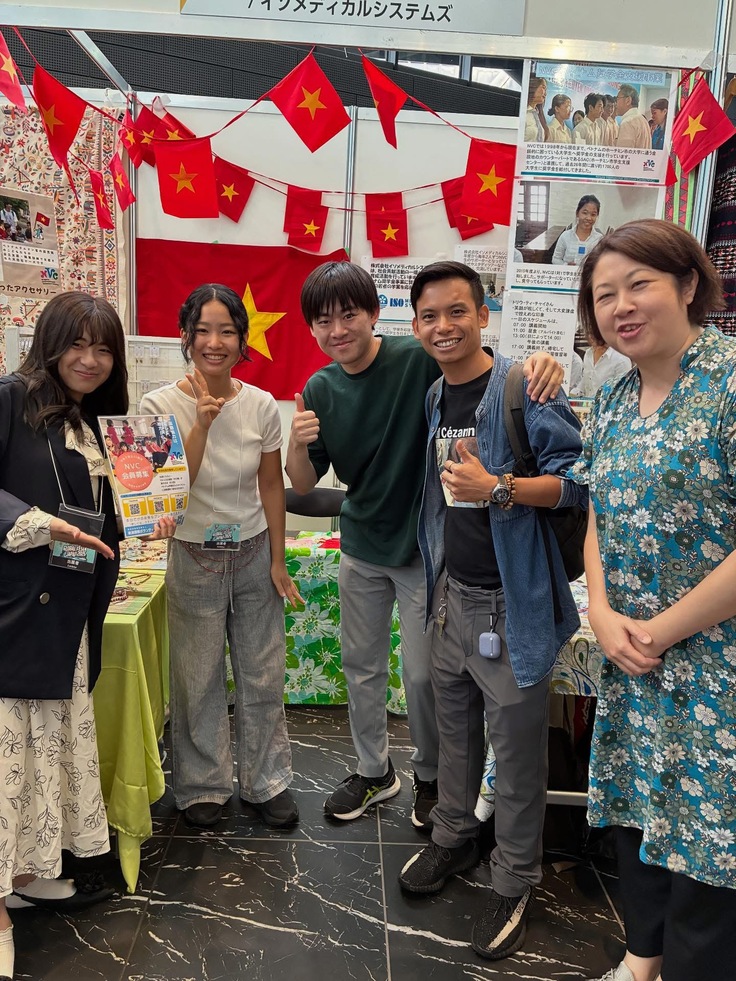 また、昨年に続き株式会社イソメディカルシステムズ様と共同出店を行い、ブースの設営から運営、撤去まで協力して活動しました。さらに、元奨学生や過去にNVCスタディツアーに参加した仲間が応援に駆けつけてくれ、NVCのつながりの広がりを改めて実感する機会となりました。