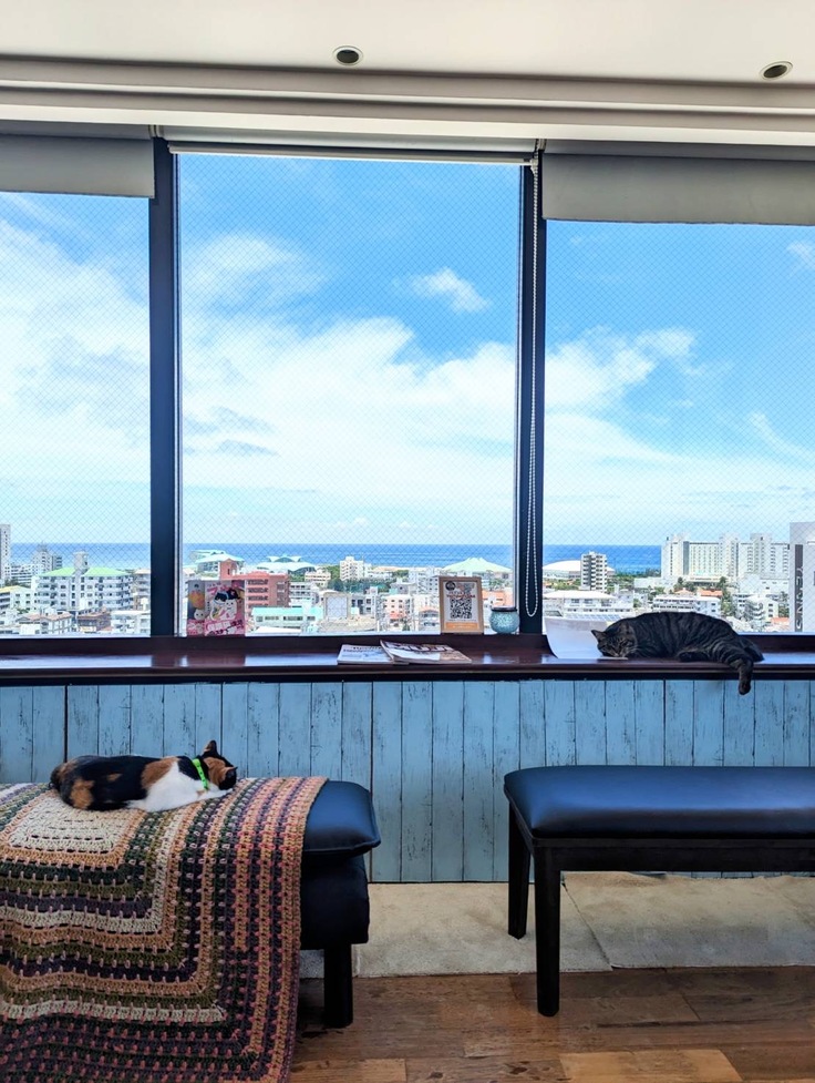 私達の犬猫カフェはチワワと猫と触れ合える素敵な空間となっています。沖縄県宜野湾市にあり海も見えるテラスもあります。沖縄に行かれるさいは是非遊びに来て頂きたいです。(わんにゃん58沖縄支部)
