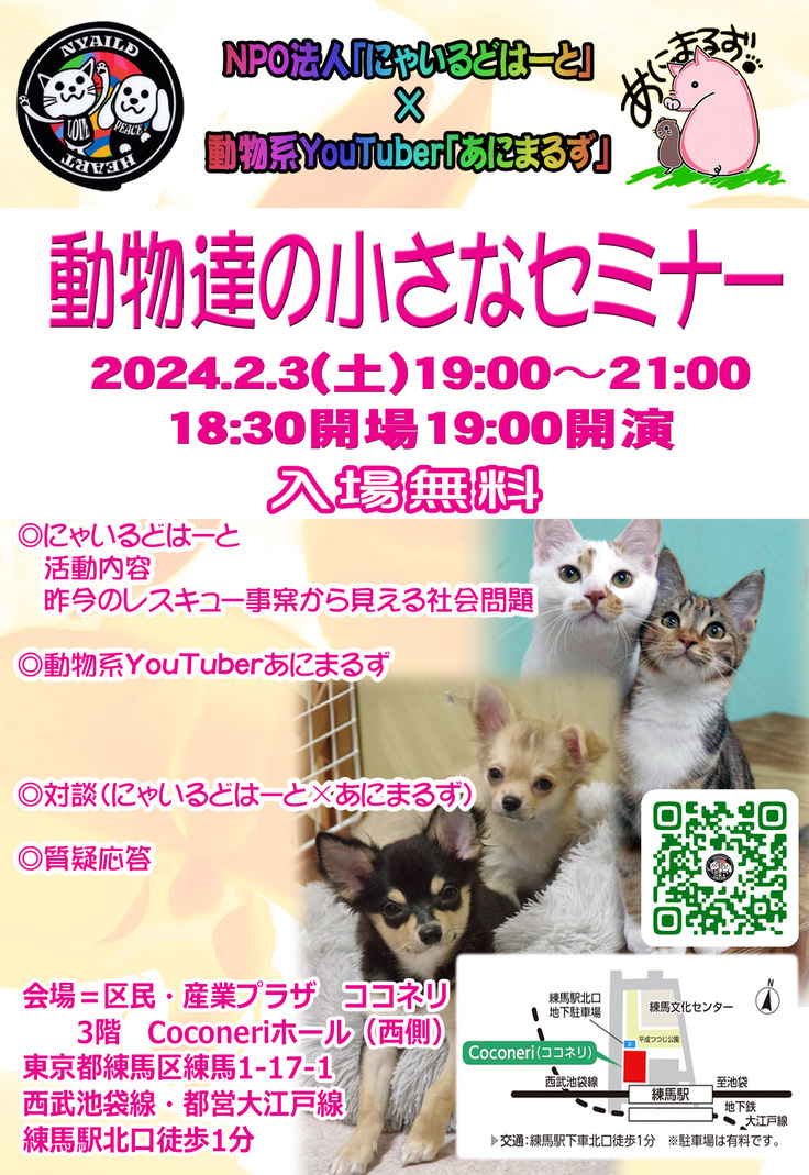 にゃいるどはーとの活動報告含み最近の動物を取り巻く問題を経験に基づいて話します。