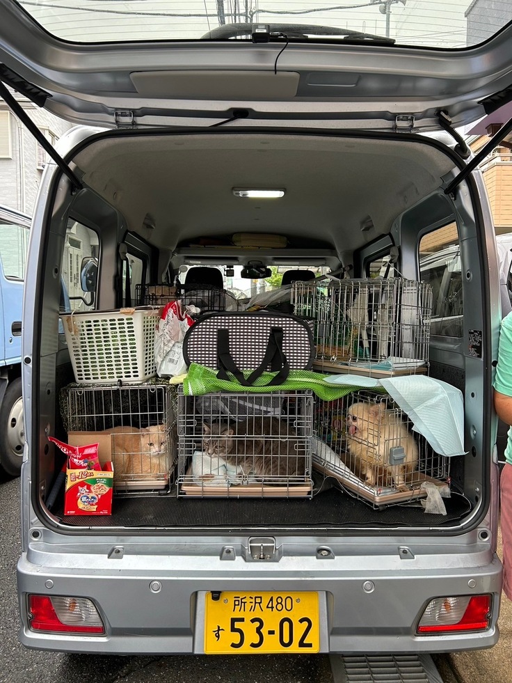 幸町シェルターからフェイス動物病院へ運び一斉オペとなりますが、東江は運搬とYouTubeライブ配信担当となります。