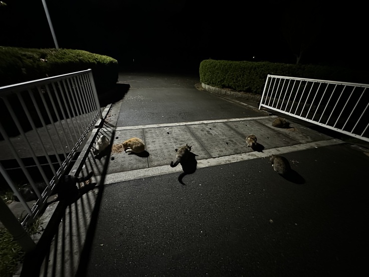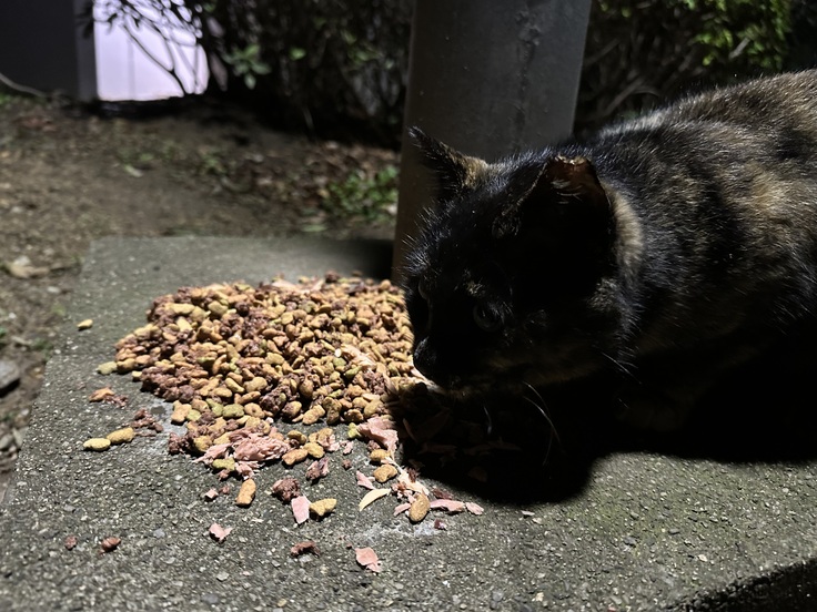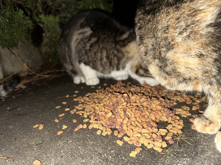 今日は仕事の帰りが少し遅くなり野良ちゃん達のご飯がいつもより遅くなってしまいましたがみんな食べに来てくれました😊