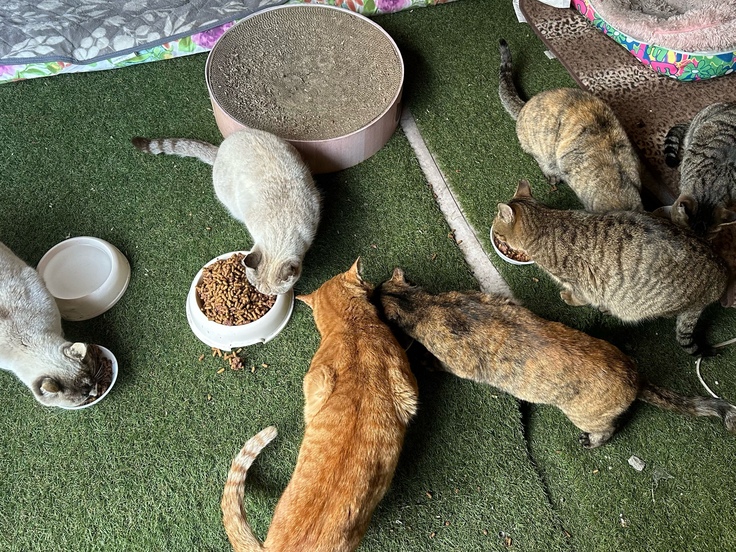 倉庫でお世話してる野良ちゃん達7匹、今日もみんな揃ってました😊
