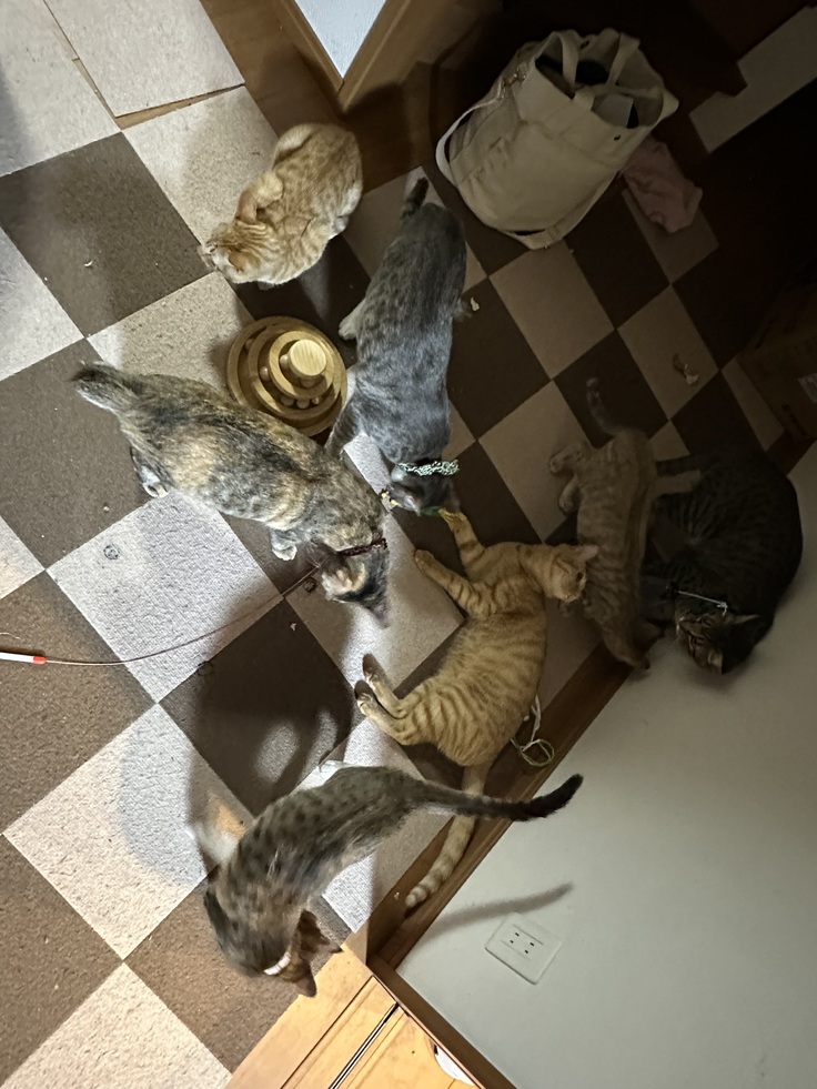 帰宅してから保護猫達のご飯、トイレ掃除終わった後は10分ほどだけでしたが遊んであげました😊