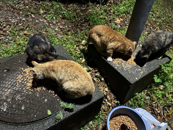 今日も雨がすぎてからの野良ちゃん達のご飯です