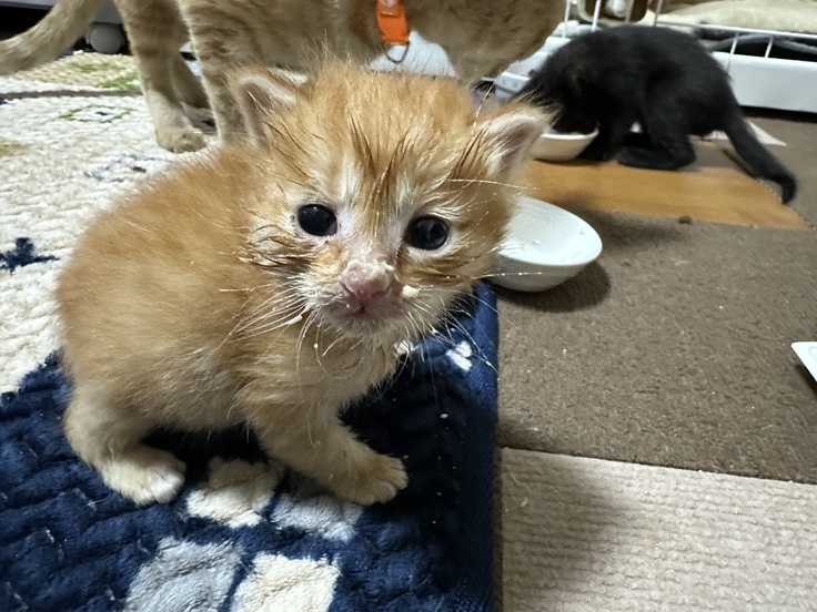 別の預かってるベビーずはまだまだミルクなのに茶トラちゃんが離乳食を食べてました😅