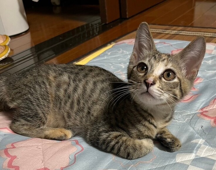 可愛いキジトラ女の子抱っこもバッチリ人馴れ抜群です。