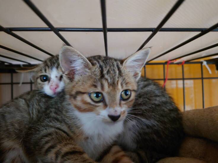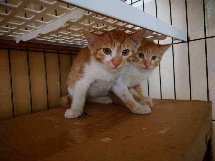茶白の男の子2匹です。人馴れいまいちで野良猫修行しっかり受けていて警戒心マックスです。