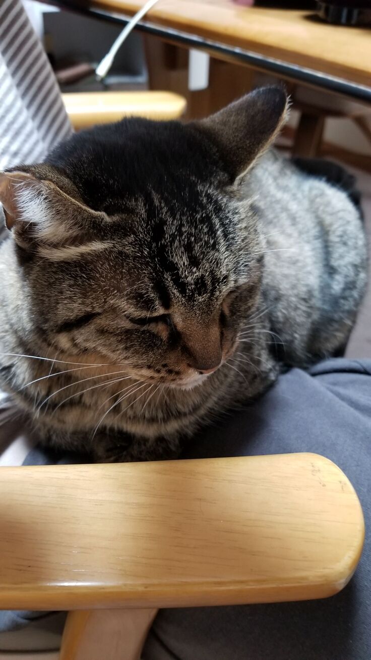 膝の上でおとなしく座ってくれたらしく、妹から写真が送られてきました😆