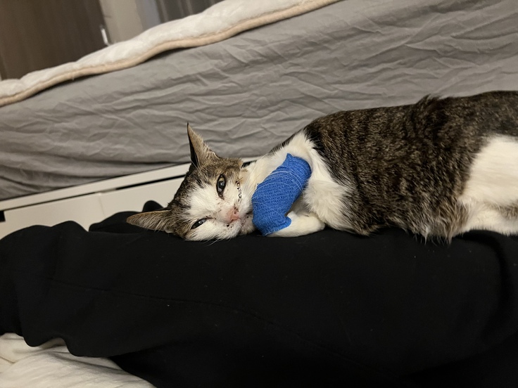 こんなに能天気で人懐っこい子が何らかの理由で野良になってしまい、事故に遭ってしまった。そして、やっと回復して再び家猫に戻ったと思ったら今は治らない病に苦しんでいます。