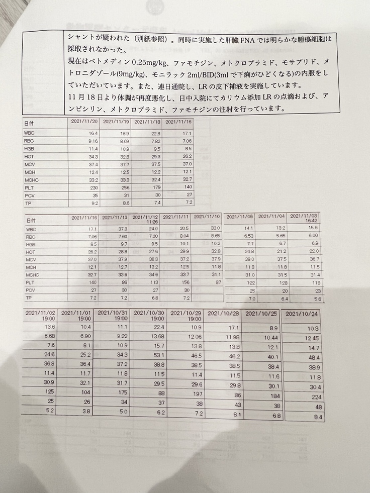 諦めきれず相談したところ、主治医に「ここで難しいと言われたらいま日本でにゃんこ先生を手術出来る人はいない」と日大動物病院の紹介状を書いてもらう。