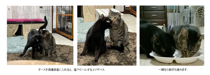 毎日を幸せに暮らせるように、彼女の大好きなダース君を保護部屋へ入れ、一緒にご飯を食べさせたり、ブラッシングやマッサージをしたりしてケアをしています。