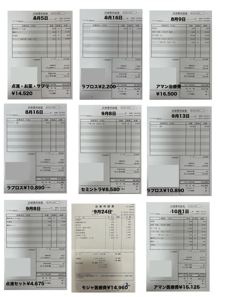 ◆腎不全の子達に8月〜10月中旬迄に支払った医療費とお薬代 ¥98,340