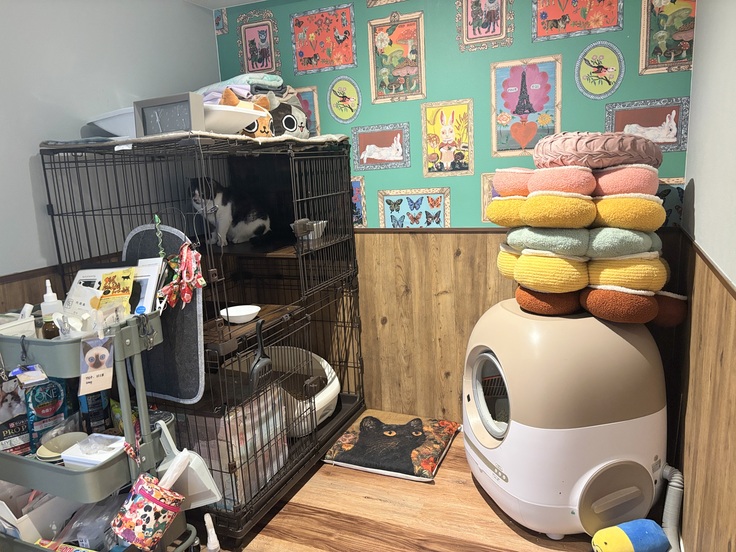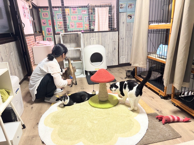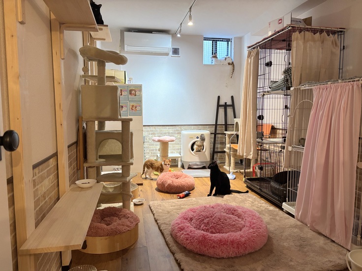 ですが、皆さまのご支援のおかげで、前回のクラウドファンディングによる「お店の2倍化拡張」は無事に完了し、新しい空間で猫たちは仲良しのチームに分かれ、ストレスの少ない毎日を過ごせるようになりました。