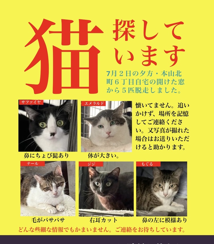 「先日、自宅に写真に似た猫が入ってきたので、見かけたら連絡しますね」