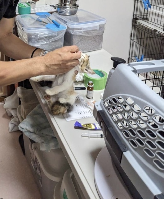 保護後、健康チェック・体重測定を行い、ノミダニ駆虫・寄生虫駆虫を行い、捕獲エリアや体調に合わせてゲージ分けを行ってます!