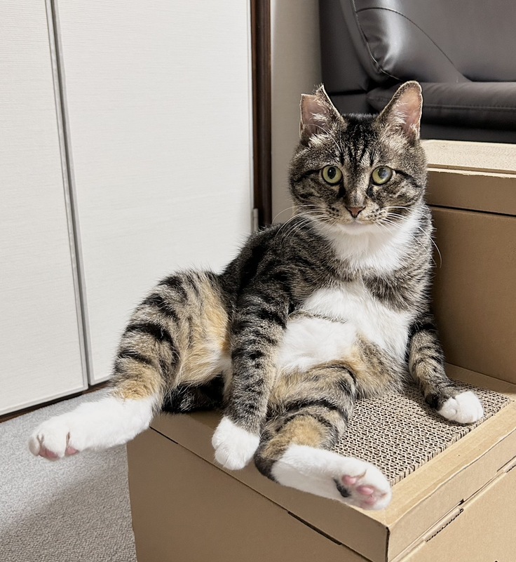 媚びない感じでクールな印象。 と思いきや、どんくさい姿を見せたり、ほかの猫