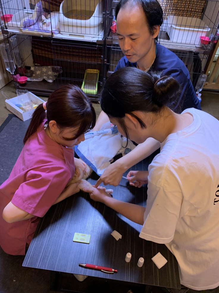 東京シェルターでの初期医療|未来を担う若き動物看護士の学生さんとともに。