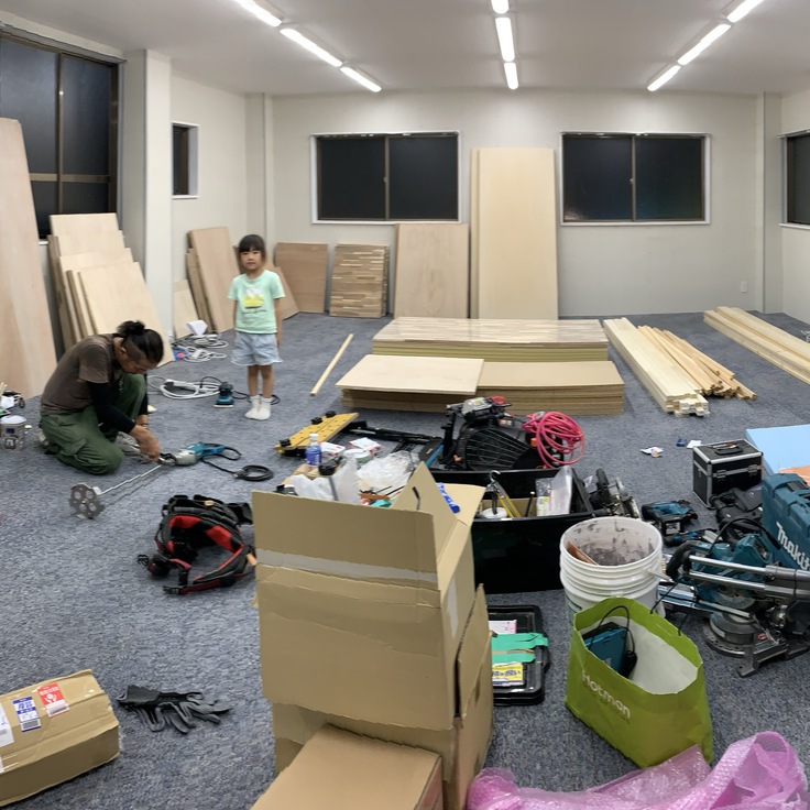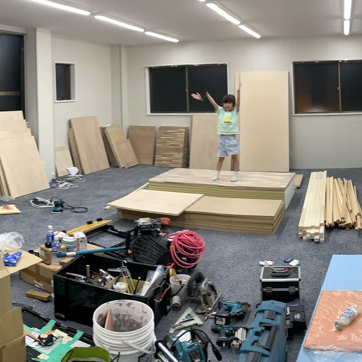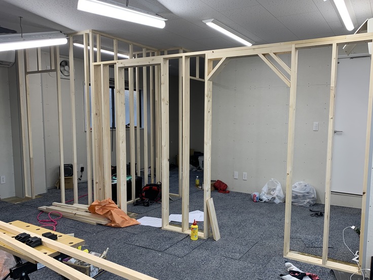 フロアも間仕切りの下地を作り、部屋の形が出来上がってきました。