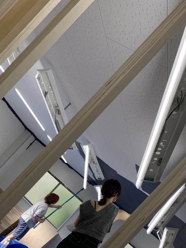 本日は昼からボランティアさんが一名手伝いに駆けつけて頂いて、一緒に天井を塗装していきました。