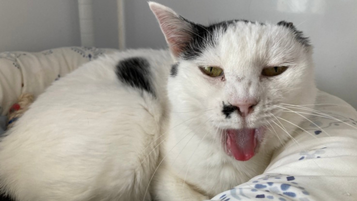 お年も高齢に近いようなのでシェルターでのんびり過ごしてもらおうと思っていましたが、悪性腫瘍が見つかりかり片耳を切除しました。でもご飯はよく食べてくれます。