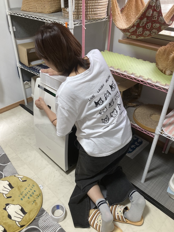 そして除湿器の上の謎のカゴの張替え作業を行いました