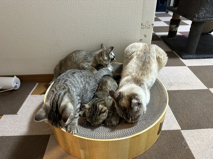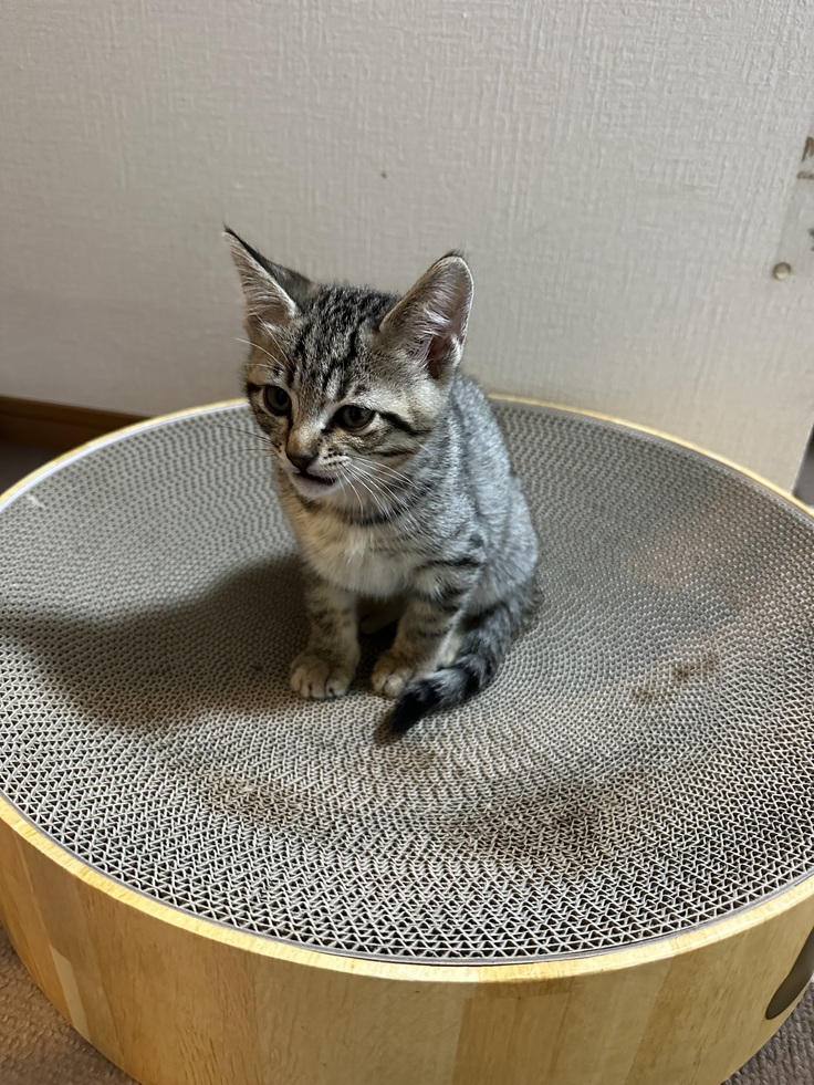 爪とぎを置いていたんだけどすぐボロボロにしちゃうので新しいのに変えました🤗