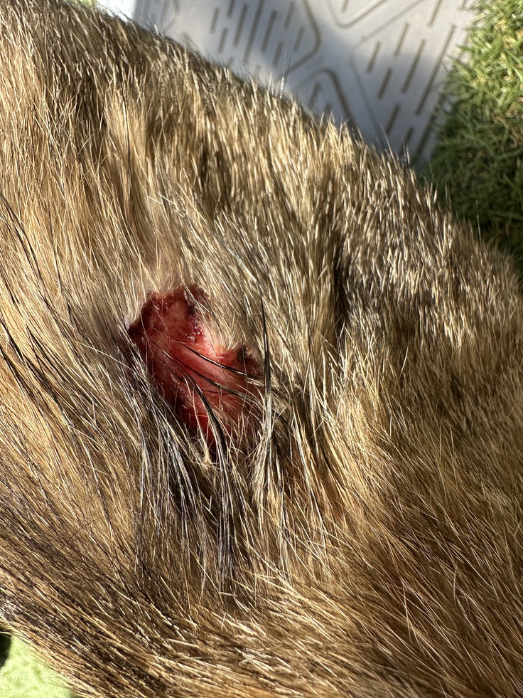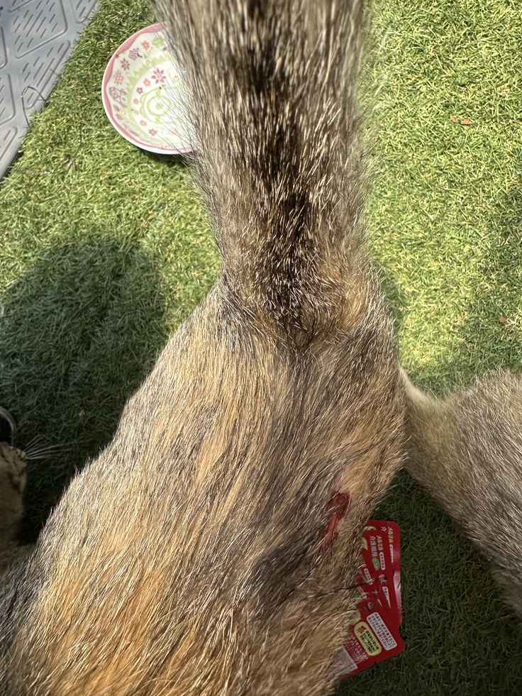 お外の子が怪我をしてしまっていて病院でもらったお薬の投与始めました💉