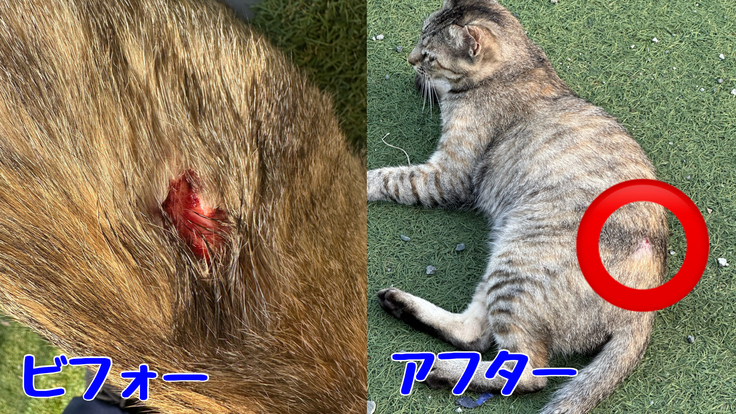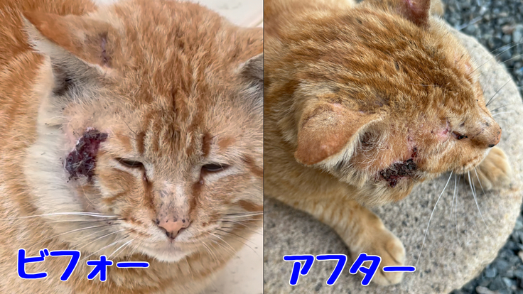 怪我をした野良ちゃんにお薬投与始めて10日目💊