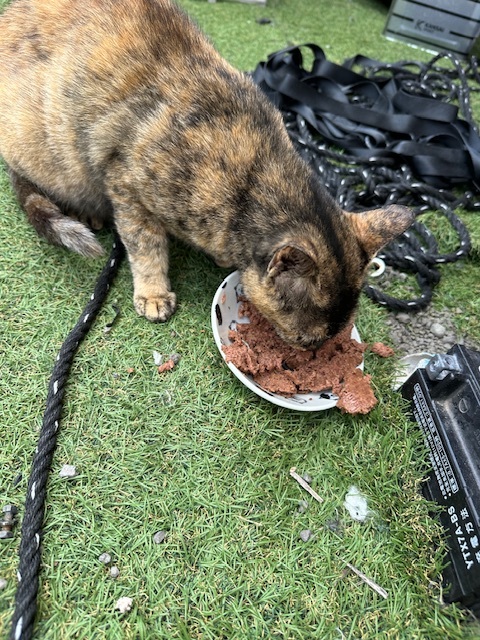お外の小太郎君が皮膚病治ってきたのに今度は耳の付け根あたりを怪我してる💦